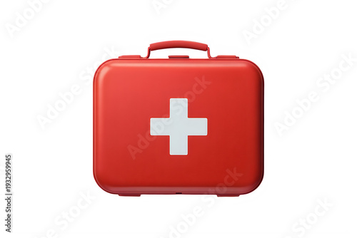 © NUR, Obraz premium Red first aid kit box with white cross isolated on a transparent background medical