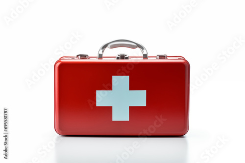 © Татьяна Евдокимова, Fototapeta premium Red first aid kit box with white cross isolated on white background.