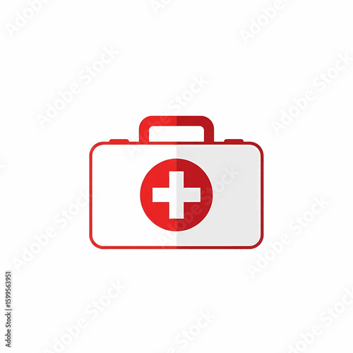 Obraz premium Red first aid kit icon, simple design, medical supplies.