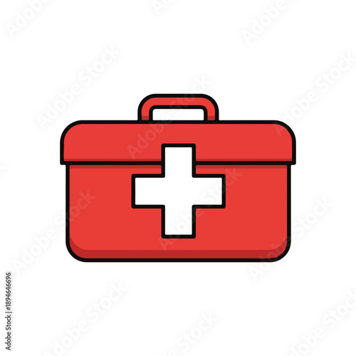 © Samsul, Obraz premium Red First Aid Kit Medical Supply Box Healthcare Icon Vector