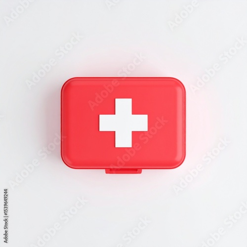 Fototapeta premium Red First Aid Kit Top View Minimalist Design Health Wellness Safety.