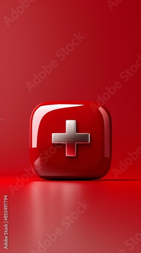 Obraz premium Red first aid kit with a white cross on a glossy surface, healthcare concept