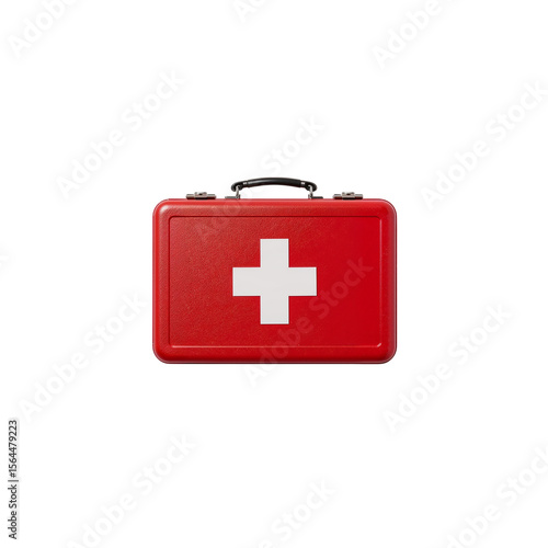 © Shehroz, Obraz premium Red first aid kit with a white cross on a stark black backdrop, ready for emergencies, transparent background