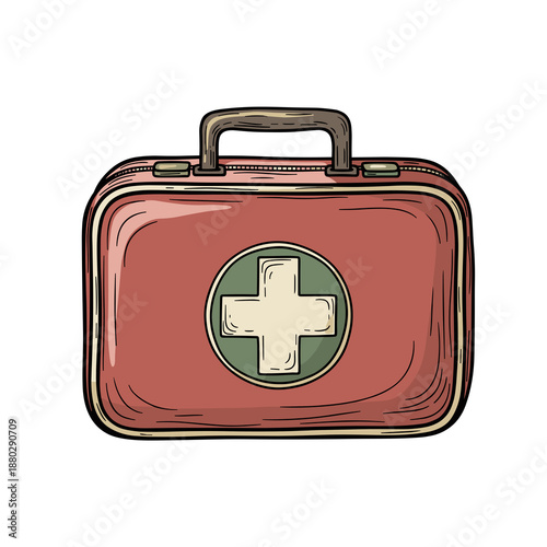 Obraz premium Red first aid kit with medical cross symbol on transparent background