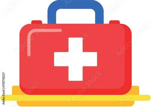 © Your Vectors, Obraz premium Red first aid kit with white cross and blue handle