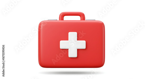 Obraz premium Red First Aid Kit with White Cross Medical Emergency Equipment