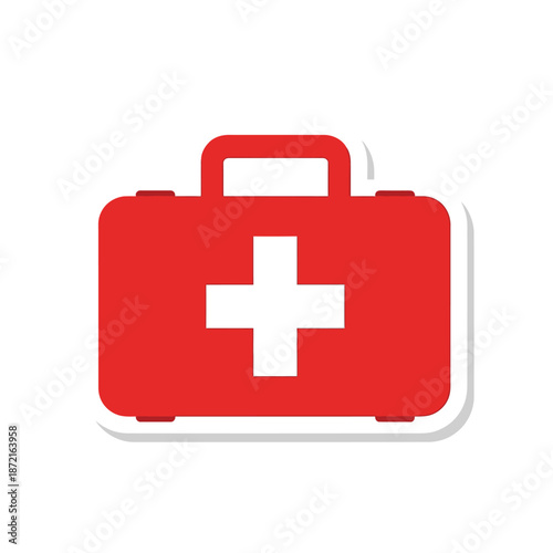 © Sajjocks, Obraz premium Red first aid kit with white cross on handle