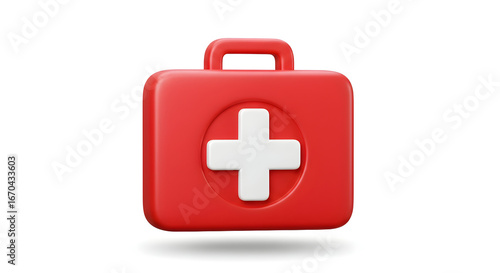Fototapeta premium Red First Aid Kit with White Cross on White Background