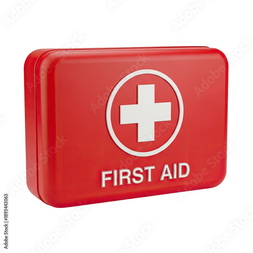 © mirna, Fototapeta premium Red First Aid Kit with White Cross Symbol on White Background.