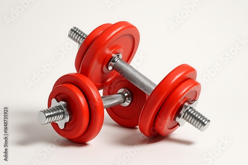 © MdLutfur, Naklejka premium Red fitness dumbbells with chrome handle, ideal for weightlifting and workout routines