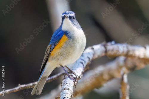 © d3_plus, Fototapeta premium 羽ばたいて飛び出す幸せの青い鳥、可愛いルリビタキ(ヒタキ科) 英名学名:Red flanked Bluetail (Tarsiger cyanurus) 埼玉県北本市、北本自然観察公園 2025
