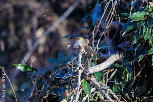 Fototapeta premium 羽ばたいて飛び出す幸せの青い鳥、可愛いルリビタキ(ヒタキ科) 英名学名:Red flanked Bluetail (Tarsiger cyanurus) 埼玉県北本市、北本自然観察公園 2024