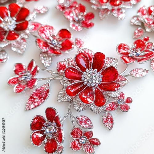 © Fenny, Fototapeta premium Red floral jewelry on white background