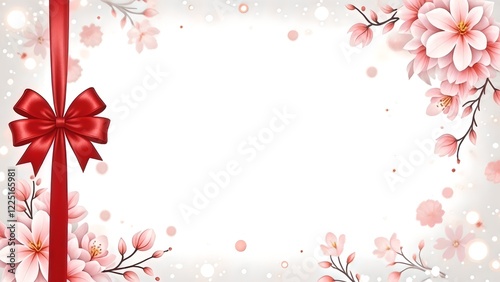 Obraz premium Red Flower Frame with Floral Design and Pink Blossom Background