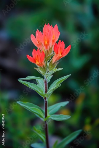 Fototapeta premium Red Flower with Green Leaves