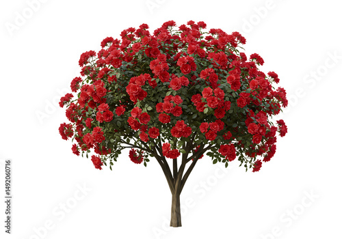 Fototapeta premium Red Flowering Tree Images Identification Care Guide Planting Tips on Transparent background