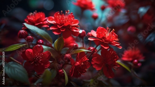 Obraz premium Red flowers branch tree, sky background
