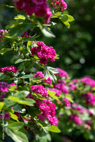 © rsooll, Fototapeta premium red flowers during flowering in spring park