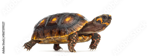 © Eric Isselée, Fototapeta premium Red footed tortoise walking on white background