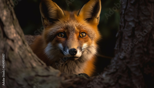 Fototapeta premium Red fox, a cute mammal, looking at camera in wilderness generated by AI