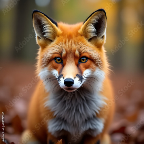 Fototapeta premium Red Fox Against an Autumn Foliage Background"