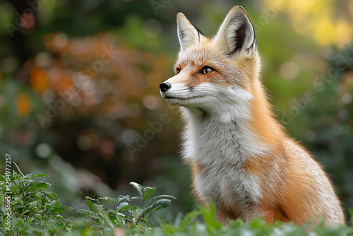 © Johanddss, Fototapeta premium Red Fox Alert in Autumnal Woodland Setting