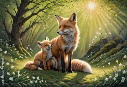 © olenakucher, Fototapeta premium Red fox art illustration. Little funny fox