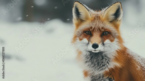 © Nijat, Fototapeta premium Red fox captured on a white background, highlighting the young red foxs vibrant fur and curious expression, making it an ideal image for various creative projects with ample copy space.