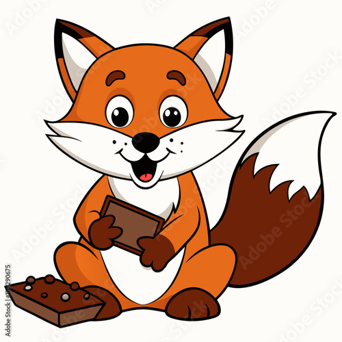 © VarotiRani, Obraz premium red fox cartoon with chocolate