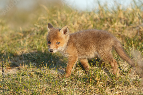 Fototapeta premium Red fox cub in nature on a springday.