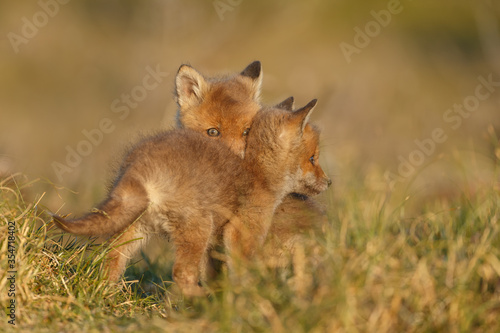 © Menno Schaefer, Fototapeta premium Red fox cub in nature on a springday.