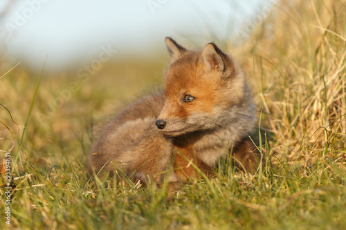 © Menno Schaefer, Obraz premium Red fox cub in springtime in nature.