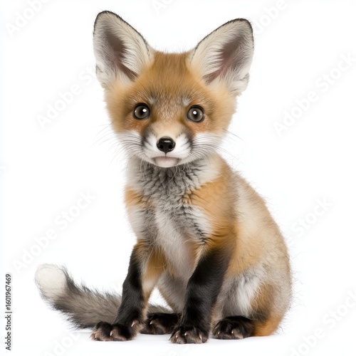 Obraz premium Red Fox Cub Sitting on White Background