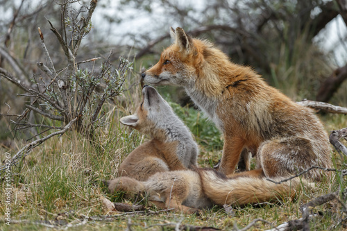 © Menno Schaefer, Obraz premium Red fox cubs new born in springtime.