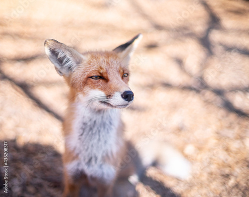 © volff, Fototapeta premium Red fox face close up. Blurred autumn nature at the background.