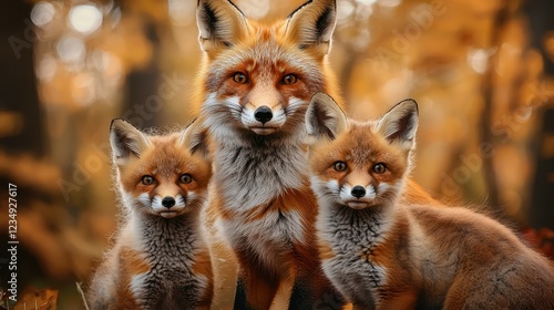 © Pix, Fototapeta premium Red Fox Family in Autumnal Woodland Habitat