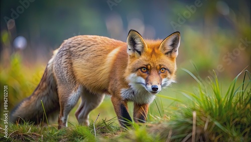 © Udomner, Fototapeta premium Red fox foraging in the wild , red fox, wild, animal, wildlife, nature, fur, mammal, predator, forest, hunting, outdoors