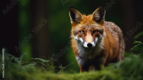 Fototapeta premium Red fox hunting, vulpes wildlife scene. Generative AI