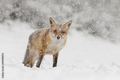 © Menno Schaefer, Fototapeta premium Red fox in a white winter landscape