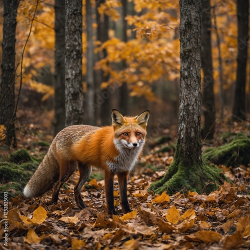 © Saeed Ahmad, Fototapeta premium Red Fox in Autumn Forest. Red fox in the forest.