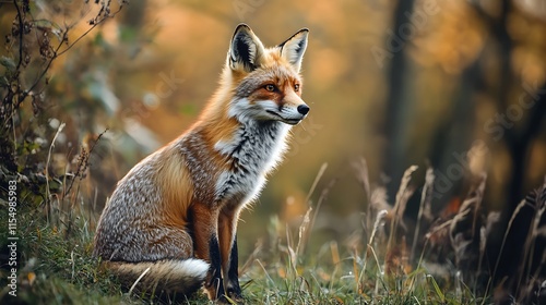 Fototapeta premium Red Fox in Autumn Forest. Wildlife, Nature, Animal