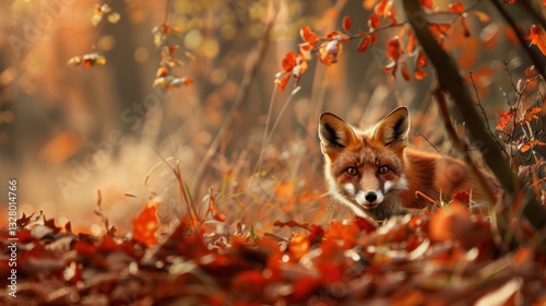 © Stephen, Naklejka premium Red Fox in Autumnal Forest Undergrowth
