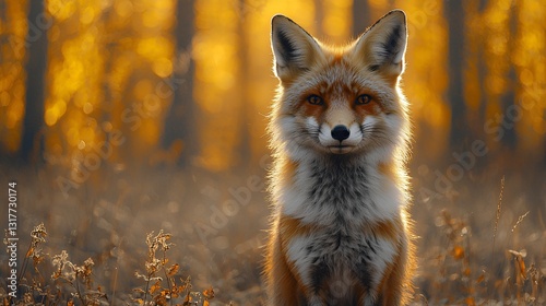 © scrollstudio, Obraz premium Red Fox in Golden Forest Sunlight
