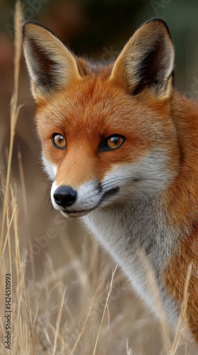 © BrandwayArt, Fototapeta premium Red fox in grassy field during golden hour