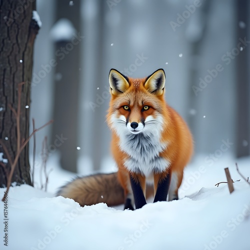 © MdRezaun, Fototapeta premium red fox in snow