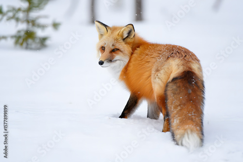 © salah, Obraz premium Red fox in snowy forest wilderness