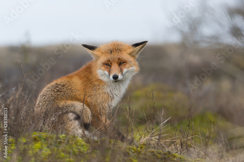 Fototapeta premium Red fox is relaxing in the dunes, photographed in the Netherlands.