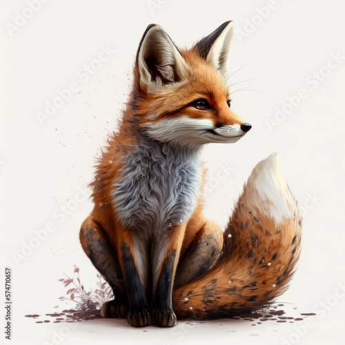 © wasan, Obraz premium Red fox isolated on white background. Ai generated.