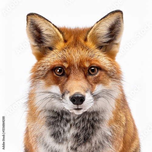 © Yaroslav Khudobyak, Fototapeta premium Red fox isolated white background