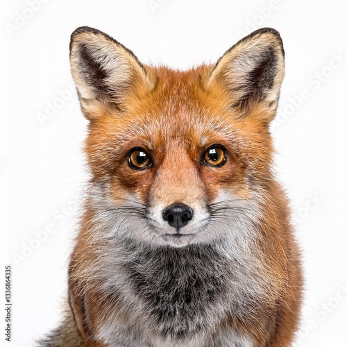 © Yaroslav Khudobyak, Fototapeta premium Red fox isolated white background